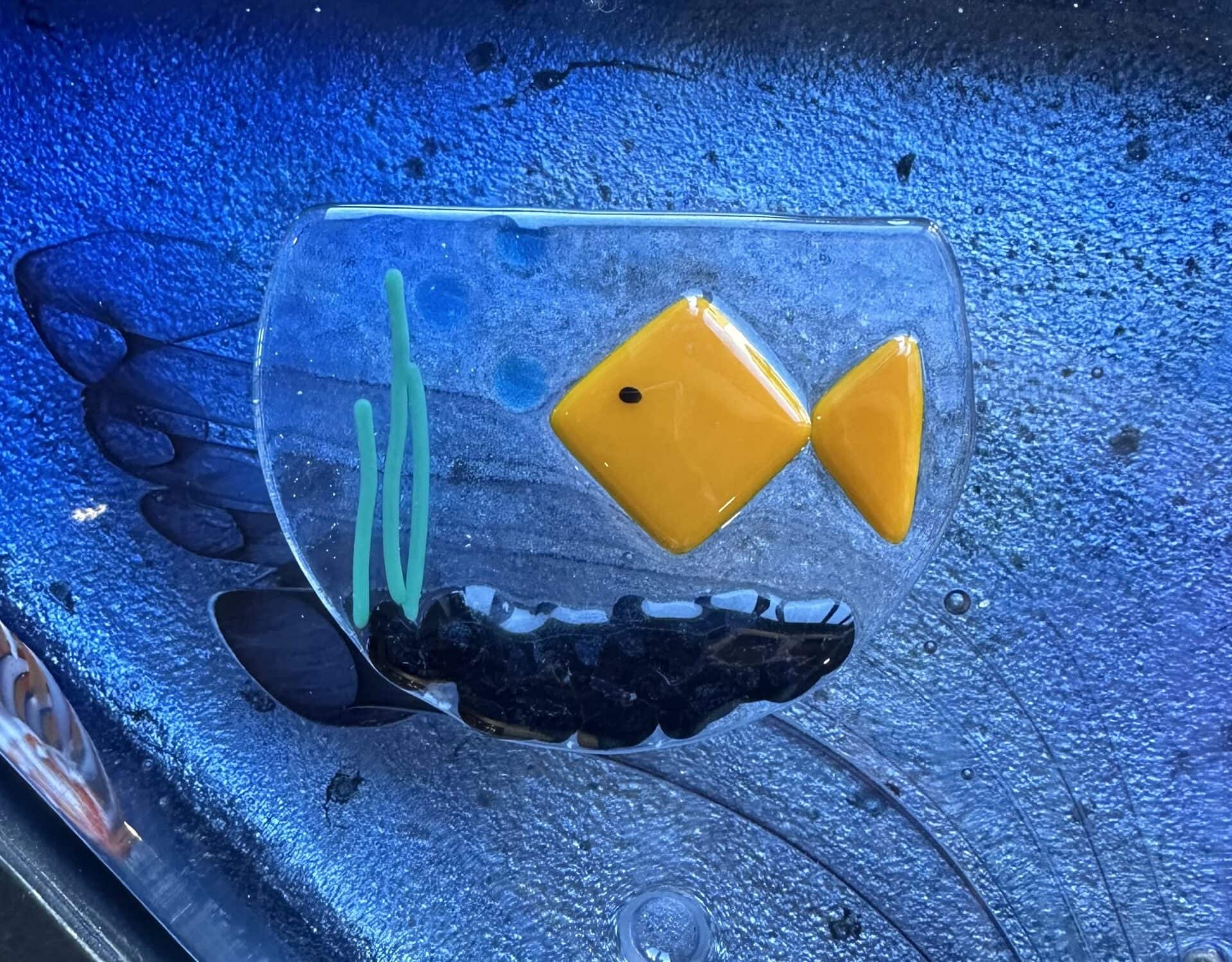 All the joy of a fish friend, none of the tank-cleaning chores! We’ll be creating 3.5×3” fused glass fish bowls in our glass studio using pre-cut glass, stringers, dots and other accessory glass. Please arrive on time to make the most out of your 30-minute session.